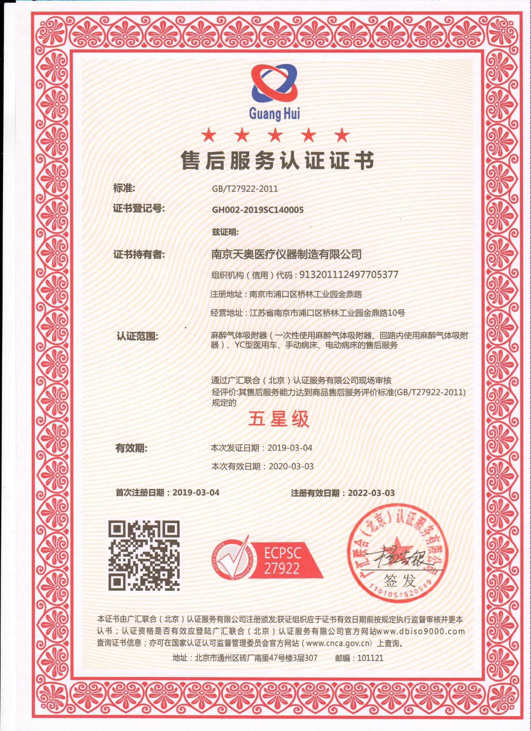 經(jīng)過嚴(yán)苛而細(xì)致的現(xiàn)場評審,天奧售后服務(wù)能力達(dá)到國家標(biāo)準(zhǔn)GB/T27922-2011《商品售后服務(wù)評價體系》